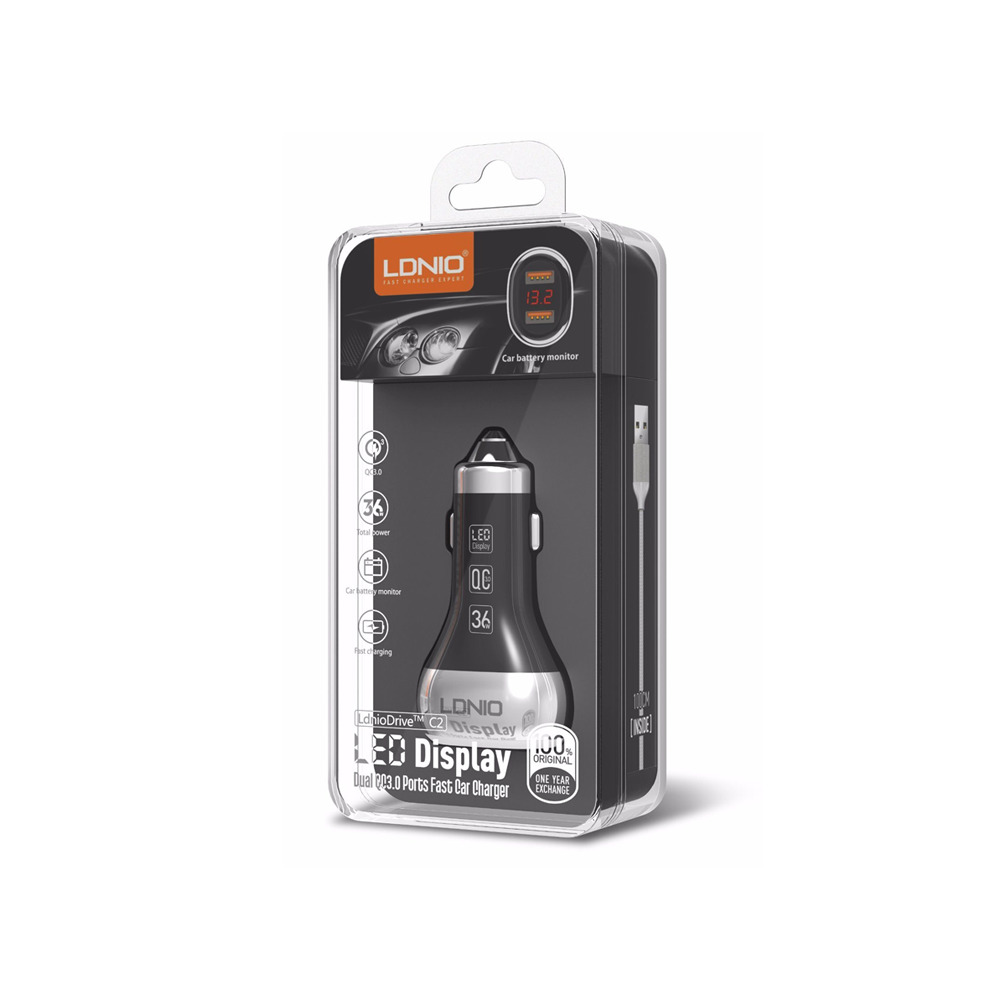 Φορτιστή αυτοκινήτου LDNIO C2, 2xUSB QC3.0, με καλώδιο Micro USB, Μαύρο
